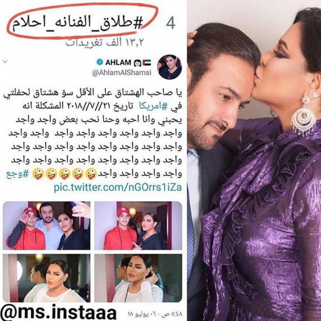 انتشر مؤخراً خبر طلاق الفنانة أحلام عبر هاشتاغ "طلاق الفنانة أحلام". وردت على ذلك عبر حسابها على "تويتر".