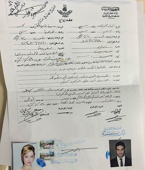 ظهر الى العلن على شبكات التواصل الاجتماعي، عقد زواج جمع الفنانة المغربية المعتزلة ومصممة الأزياء بسمة بوسيل بنجم عربي، قبل زواجها من النجم المصري تامر حسني.