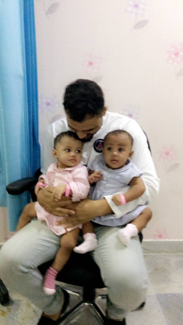 وقال: "قمت بزيارة الطفلتين في مستشفى الولادة بجدة، وهما تتلقيان الرعاية المميزة والكاملة، وهما الآن في أحسن حال وصحة جيدة، وأحمد الله أن ابنتيّ بعافية، وأنا مستعد لتحمل أية متاعب في سبيل أن أعيش مع ابنتيّ في أمان".