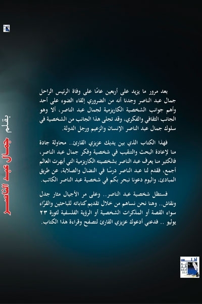 صدر للدكتور خالد عزب والباحثة صفاء خليفة كتاب تحت عنوان «بقلم جمال عبد الناصر»، عن دار «أطلس»، يتألف من قسمين، الأول عبارة عن تأمل في فكر الزعيم الراحل وشخصيته، والثاني يضم مؤلفاته: «في سبيل الحرية»، «فلسفة الثورة»، «يوميات حرب فلسطين».
