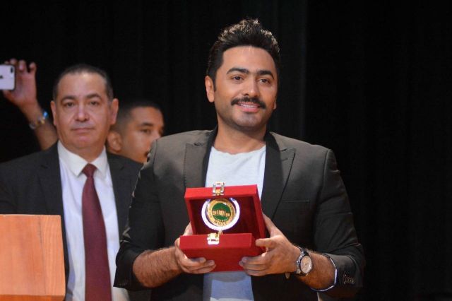 حضر تامر قبيل ختام الاحتفالية وهو ما أحدث مفاجأة بمجرد صعود تامر علي خشبة المسرح حيث تعالت هتافات وصيحات الترحيب للخريجين وأسرهم.