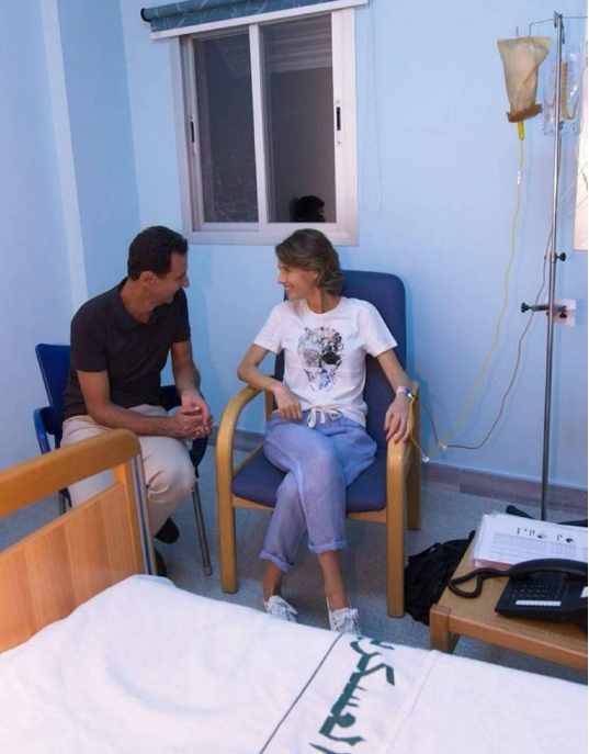 وأطلت الأسد برفقة زوجها في أحد مطاعم دمشق القديمة، واضعة منديلاً على رأسها، في خيار رأت التعليقات أنها اعتمدته لإخفاء تساقط الشعر، إثر بدئها العلاج الكيماوي، لا الإشعاعي، الذي لا يؤدي الى خسارة الشعر.