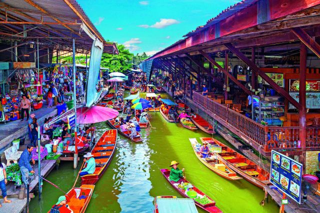 هناك عدد كبير من الأسواق العائمة في بانكوك، لكن أشهرها هو سوق دامنوين سادواك الواقع في منطقة راتشابوري غرب بانكوك. يأتي التجار إلى هذا السوق في قوارب ذات مجاذيف، محمّلة بالفاكهة والخضر الطازجة لبيعها للمتسوّقين.