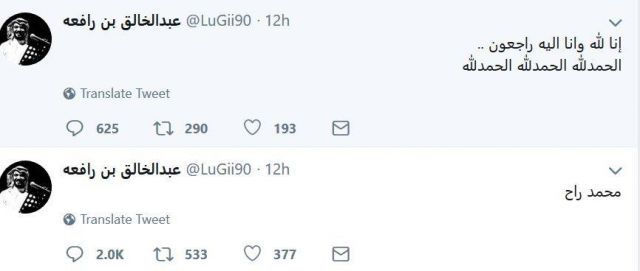 وتداول ناشطون تغريدات نشرها عبد الخالق، شقيق الفنان. فقد كتب: "محمد راح" وأضف بعد ذلك: "إنا لله وإنا إليه راجعون. الحمدلله، الحمدلله، الحمدلله".