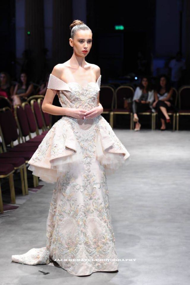 أما الألوان التي طغت على المجموعة فهي تلك الترابية التي تراوح بين البيج والبني والفضي والأسود. ولجهة الأقمشة فقد تميزت بالتطريز وبالتول والدانتيل والنقوش التي أضفت على التصاميم أناقة بارزة.