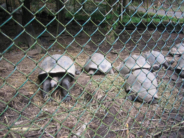 بعد التسوّق وشراء التذكارات ركبنا الحافلة التي صعدت بنا نحو الجبل والمشاهد الخلابة تتكرر، وفي طريقنا توقفنا عند حديقة مسوّرة بسياج من الشباك الحديدي حيث تجد السلاحف العملاق تتبختر ببطء واثقة رغم أنها ثقيلة الخطى وكأنها تتغنج على العابرين الذين ينقادون لفضولهم ويحاولون التقاط الصور معها من خلف السور، فلا تأتي إليك إلا إذا عرضت عليها ورقة عشب لتطعمها، وتفاجئك حين تفتح فاهها الكبير مما يثير الخوف، وكادت إحداهن تعض يدي لو لم تنبهني ساندي.