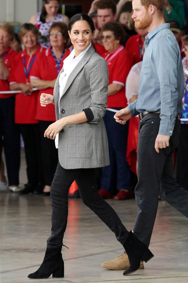 وتألقت ماركل، التي أعلن البلاط الملكي عن حملها أخيراً، ببلايزر يبلغ ثمنه نحو 145 دولاراً أميركيا، وهو بتصميم الـ Over sized باللون الرمادي ونقوش المُربعات، من مجموعة الأزياء الخاصة بالمصممة ولاعبة التنس المشهورة سيرينا ويليامز، الصديقة المقربة لميغان.