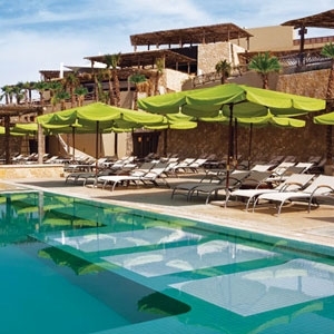 ومن يدخل إلى المنتجع يلاحظ أنه بمستويات عدة وأن من يصل إليه ينزل السلالم باتجاه البحر الميت مروراً بأحواض السباحة المتنوعة والحوض الذي يحتوي على مياه البحر الميت والذي نفّذ خصيصاً بطريقة توحي بأنه في مستوى البحر وبامتداده.