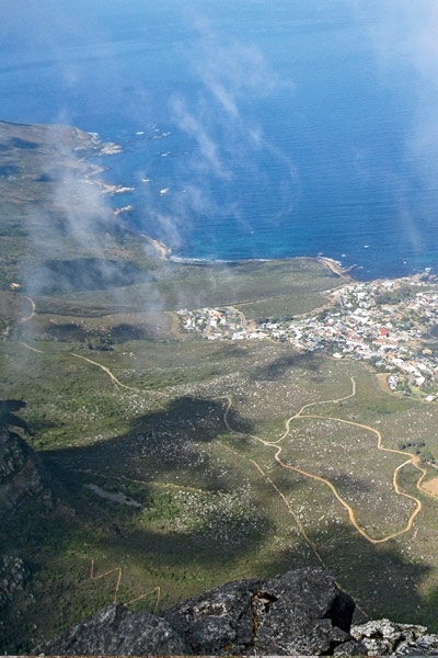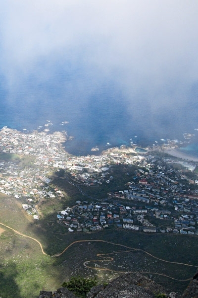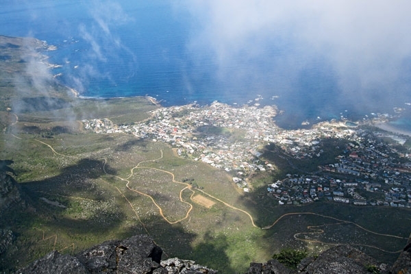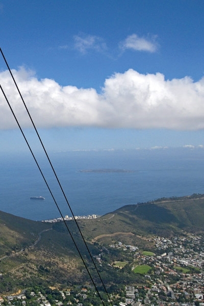 اللافت أيضًا أنك لا تشعر بدوران المقصورة وإنما تفاجأ فقط بأنك صرت واقفًا أمام النافذة المفتوحة. بعد خمس دقائق من تلاعب الهواء بالمقصورة وصلنا إلى قمة الجبل. المشهد يعجز الخيال الإنساني عن وصفه، فكايب تاون تقع عند أقدام الجبل ورغم مساحتها الكبيرة بدت صغيرة كما لوحة «البازل» لا تفقه كيف جمعت بهذا الإتقان.