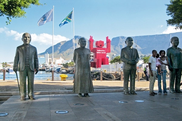 تناولنا غداءنا في أحد مطاعمه ثم توجهنا سيرًا على الأقدام إلى المحطة البحرية حيث سننطلق من بوابة نلسون مانديلا نحو روبين آيلند، جزيرة الحرية التي مكث 27 عامًا بين قضبان سجنها نلسون مانديلا قائد جنوب أفريقا الحديثة.