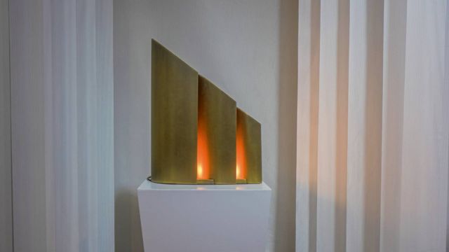 ويتابع: “الفكرة بسيطة جداً إذ إن القطعة تحتوي على مصابيح ويمكننا إزالة القناطر والاحتفاظ بقاعدة الضوء، وقد جاءت القطعة في ألوان ثلاثة Steel، Brass، Copper. وأول قطعة صنعتها كانت الـ Steel، وبما أن القطعة تتألف من ثلاث قناطر، فكان عليّ أن أصمّمها بألوان ثلاثة. القطعة تمثّل تحفة حية، على عكس الكرسي أو الطاولة... فتلك قطع جامدة. كما أردت أن أعطي التحفة حقها في المساحة التي سأقدّمها فيها لمرتادي المعرض، في خطوة مكمّلة لفكرتي، فأرفقت ستائر أُسدلت على شكل قناطر وضعتها فوق القطعة”.