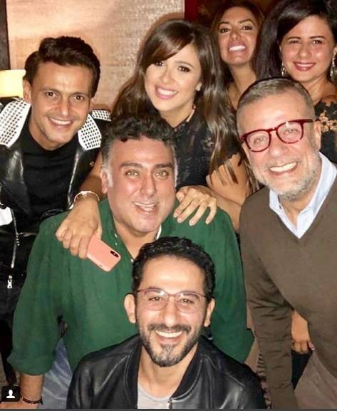 وأعد النجوم قالب حلوى كبير عليه صورة حلمي وزكي مع تهنئة لكل منهما بعيد الميلاد، وأخذ الجميع يغني احتفالا بتلك المناسبة.