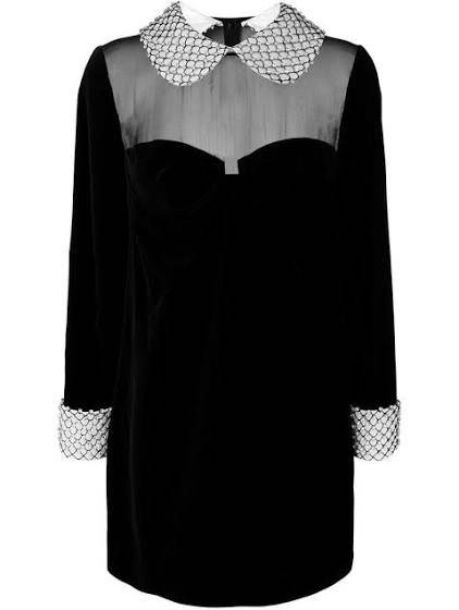 رصدنا لك الإطلالة الثانية، إذ أختارت فستاناً أسوداً مخملياً من توقيع توم فورد. ويأتي بقماش التول الشفاف الذي غمر قصة الصدر من الأعلى، ويتميز بالكمين الفضيين المرصعين والياقة العريضة المتناسقة مع أطراف الأكمام، ويبلغ ثمن التصميم نحو 8,437 دولاراً أميركياً.