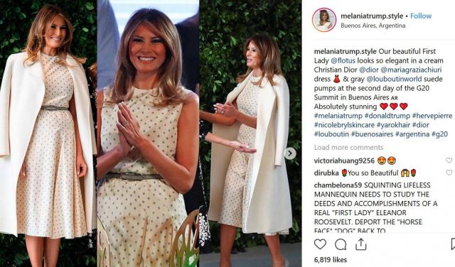 أثارت سيدة أميركا الأولى ميلانيا ترامب ضجة كبيرة بسبب الفستان الذي ارتدته خلال حضورها فعاليات قمة مجموعة الـ20 التي تقام في الأرجنتين.