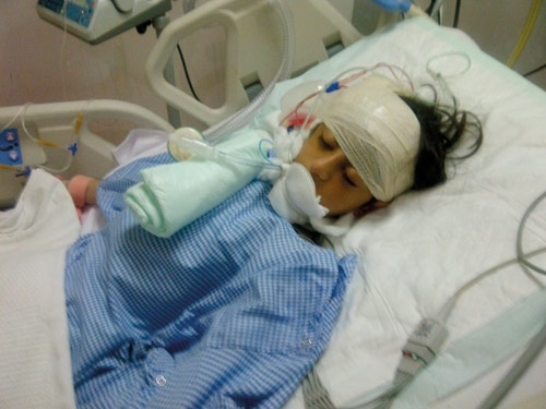 في أحد الأيام وعندما كانت في بيت والدها تلقت أم تركي اتصالا من أختها تبلغها بادخال طفلها تركي المستشفى: «بعد أسبوع من خروجي من العملية التي أجريت لي، وذهابي إلى بيت والدي مرة أخرى تلقيت اتصالا من شقيقتي تعلمني أن ولدي تركي أُدخل المستشفى على أثر ضرب مبرح من والده. هرعت اليه لأجده غائبا عن الوعي يعاني نزفا داخليا في المخ. ذهبت إلى قسم الشرطة وقدمت بلاغا في حق زوجي فألقي القبض عليه... أُجريت لولدي جراحة، وعند إفاقته من الغيبوبة تم تحويله إلى المركز التأهيلي».
