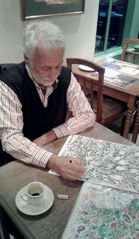 ● غير أني أشعر بالاستكانة حين أمضي ساعات طويلة في إعادة صوغ الماضي بحلّته البهيّة ورصد ما تبقّى من بيوت عتيقة وأدراج وحفاف بين الأبنية الحديثة المتراصّة. إيماناً مني بأن الفن العالميّ ينطلق من المحلّي. فكبار الفنانين الروّاد في العالم رسموا محيطهم وبيئتهم. كانت البساطة مفتاحاً لشهرتهم. البساطة المدبجة بصدق وانتماء حقيقيّ والأحاسيس، لا يمكن أن تنهل من تجارب بعيدة أو من تيارات غير مرتبطة بواقعيتها. فبقدر ما تكون لوحتي أقرب الى ذاتي بقدر ما أشعر بالاطمئنان والفرح. فلا غاية عندي إلاّ إرضاء شغفي وتحويل مساحات ألواني الى لوحات فرح، لا سيما في المرحلة هذه. أما راهناً، فأنا في حال من الهدوء الذاتي، من الاستكانة بعيد أزمات متلاحقة. الى تبدّلات وأحداث عصفت في لبنان. بتّ أحبّ الصمت أكثر، الى العزلة في رحاب المقاهي، رفقائي القهوة والقلم والألوان...