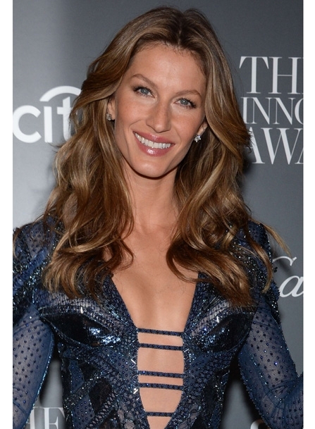 وقد خطفت العارضة جيزيل الأنظار بعد إنجابها لطفلها الثاني بقامتها الممشوقة بفستان من Atelier Versace.