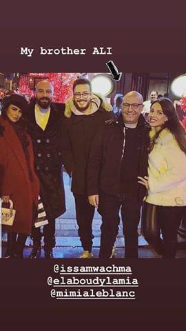 وأشار لمجرد بواسطة سهم إلى الأخير معلقاً: "أخي علي". كما بدا في الصورة كل من صديقه مصمم الأزياء عصام وشمة وزوجته لمياء.