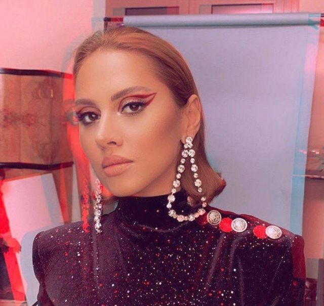 إلا أنها أثارت الكثير من الجدل بسبب ماكياج العيون الذي اعتمدته. فقد طبقت آيلاينر باللون الأحمر وقامت برسم خطين أولهما عند خط الرموش والثاني عند الحد الأعلى للجفن الأعلى.