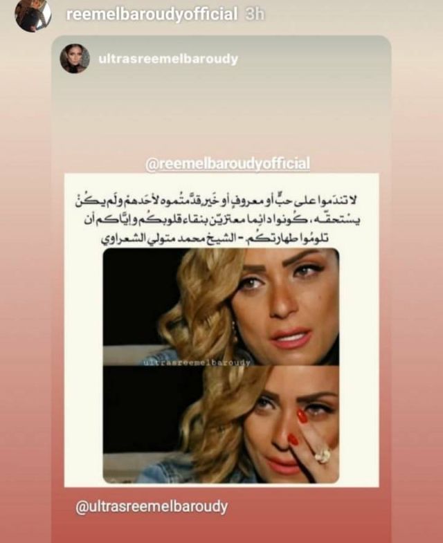 واثارت ريم الكثير من علامات الاستفهام بعد المنشورات الاخيرة التي شاركتها عبر خاصية الستوريز على صفحتها والتي جاء فيها "لا تندموا على حب او معروف او خير قدمتموه لأحدهم ولم يكن يستحقه، كونوا دائما معتزين بنقاء قلوبكم واياكم ان تلوموا طهارتكم".