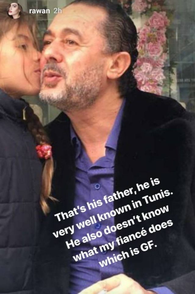 ووصل انتقام روان الى حد نشر صورة لوالد خطيبها السابق وكتبت عليها "لم يكن يعلم ما فعله بي ابنه لذلك هو صديق".