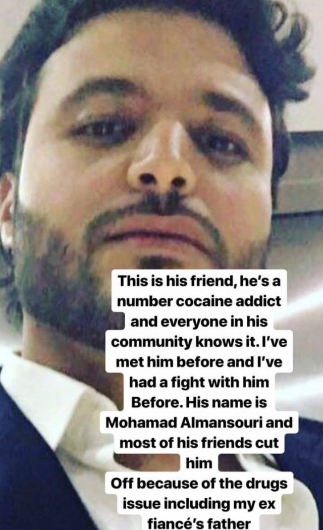 ثم نشرت صورة محمد، أحد اعز اصدقاء حبيبها السابق، ولفتت الى انه مدمن مخدرات. ونشرت ايضاً صورة شقيقته وكشفت انها تزوجت مرتين ولديها بنت، وكانت تعلم بكل ما كان يقوم به شقيقها ولكنها سكتت لانه يعيلها مادياً.