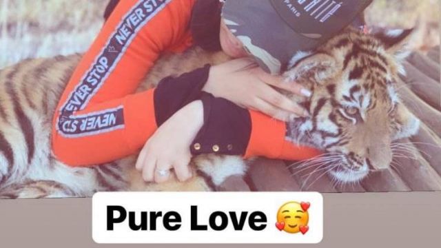 اضافة الى جرأتها في اللعب مع النمر الصغير، فاجأت الجميع بالوصف الذي اطلقته عليه حيث كتبت pure، في اشارة الى انه صاف وبريء، الامر الذي اعتبره البعض ضربا من الجنون، الا ان الفنانة بدت سعيدة وقوية.