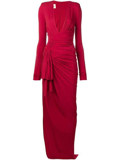 واختارت هلال فستاناً أنيقاُ باللون الأحمر من توقيع Alexandre Vauthier ذات الأكمام الطويلة والفتحة العالية التي كشفت عن ساقها. ويبلغ ثمنه 3,198 دولار أميركي.