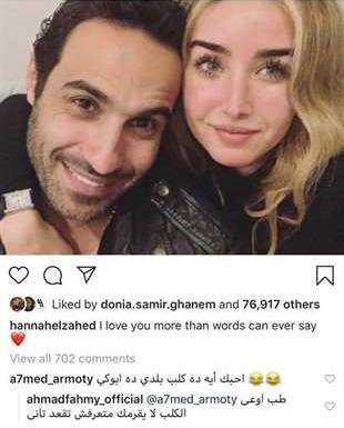 ولكن اعلان هنا حبها على العلن لم يمر بسلاسة، حيث عاد فهمي للهجوم على معجبيها، من خلال رده على بعض التعليقات التي يراها مزعجة ومتطفلة على حياتهما الشخصية.