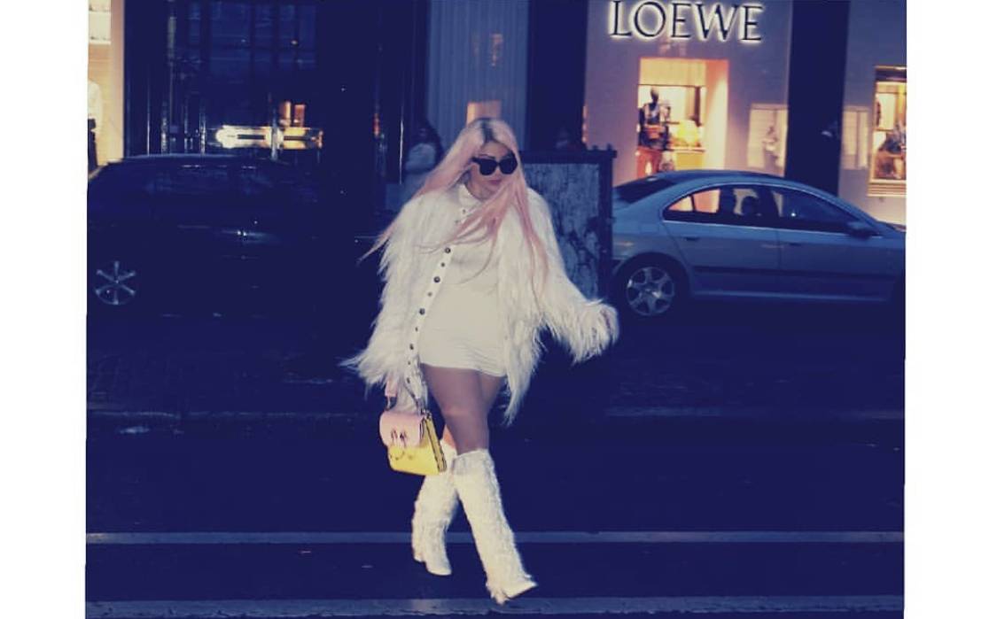 وأكملت إطلالتها بمعطف من الريش الأبيض من توقيع زهير مراد يبلغ ثمنه نحو 4,385 دولار أميركي.