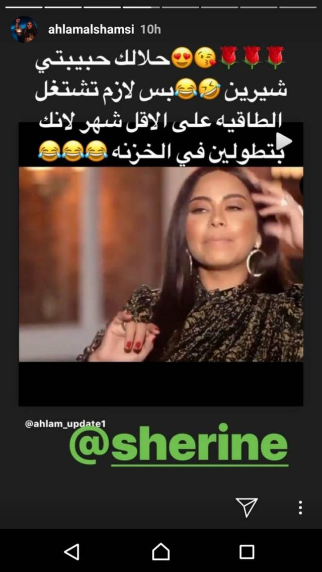 وبعدما اختارت شيرين خلال استضافتها في برنامج "تخاريف" أنها لو كان لديها "طاقية الإخفاء" فأنها سوف تدخل خزنة مجوهرات أحلام، لترى ما فيها من قطع ماسية قيمة، نشرت الاخيرة ردها عبر خاصية الستوريز على تطبيق انستغرام كتت فيها: "حلالك حبيبتي شيرين...بس لازم تشتغل الطاقية على الأقل شهر لانك تطولين في الخزنة" واضافت بعض الايموجي لوجوه تضحك بشدة.