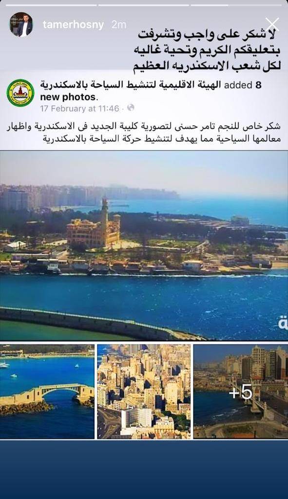 وكتبت الهيئة الإقليمية لتنشيط السياحة من خلال حسابها الخاص على "فيسبوك": "شكر خاص للنجم تامر حسنى لتصويره كليبه الجديد فى الإسكندرية وإظهار معالمها السياحية مما يهدف لتنشيط حركة السياحة بالاسكندرية".