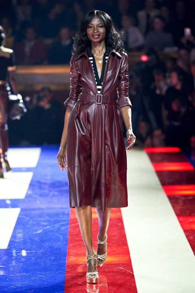 لفتت جيجي حديد الأنظار بإطلالتها خلال حضورها عرض أزياء tommy x zendaya لربيع وصيف 2019 في باريس، حيث اختارت "لوك" باللون البرغندي من المجموعة الجديدة، فاعتمدت معطفاً طويلاً ارتدته على شكل فستان عصري تميز بالرباط الجلدي والياقة.