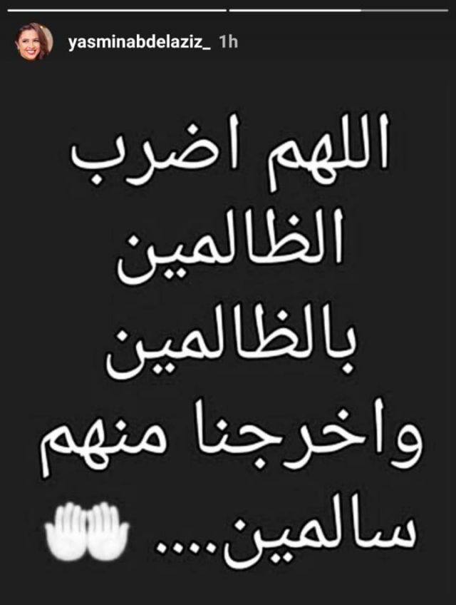 ونشرت ياسمين عبر خاصية الستوريز على تطبيق انستغرام صورة كتب فيها: "أضرب الظالمين بالظالمين وأخرجنا منهم سالمين".
