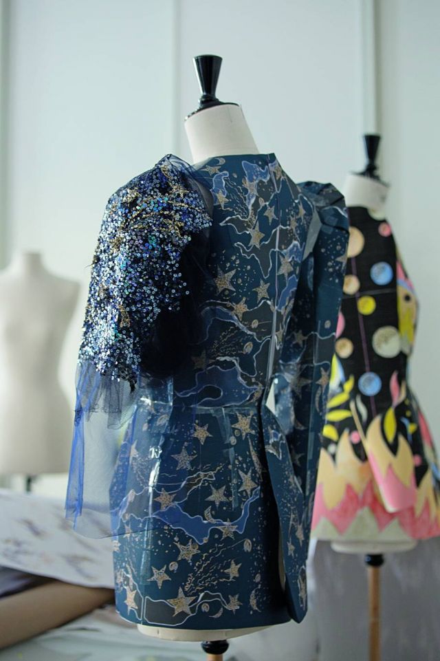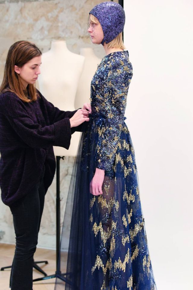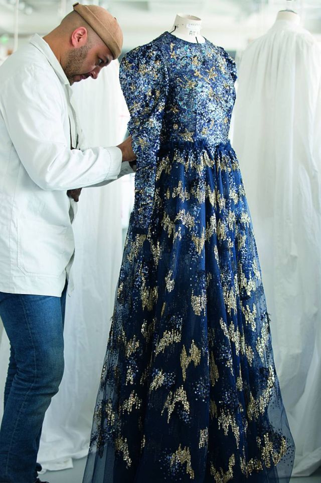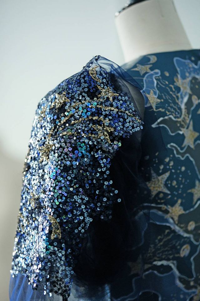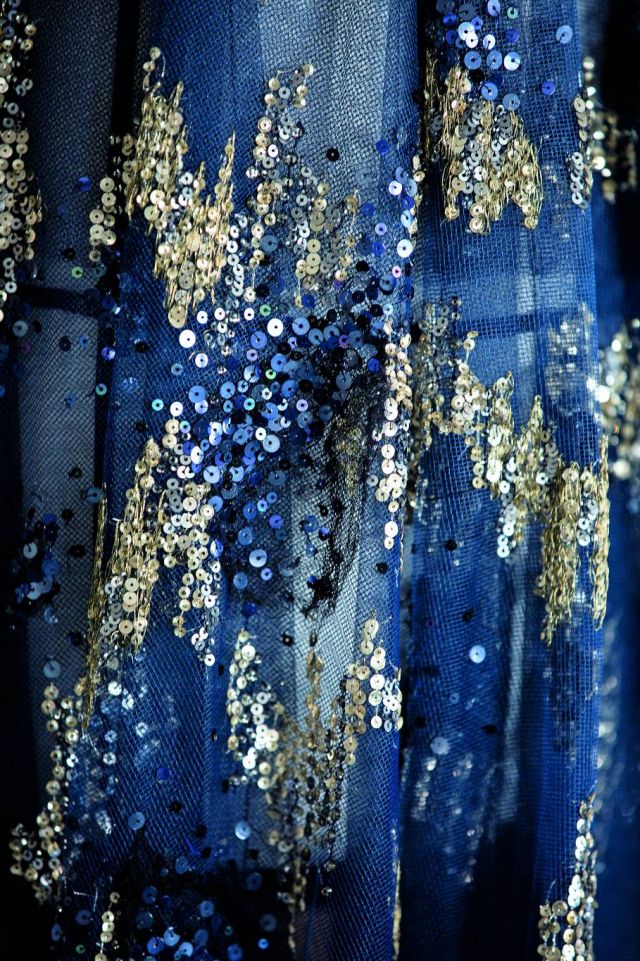 مثل سماء زرقاء ليلية ذات قمر مكتمل تزيّنها النجمات المضيئات، يتألّق هذا الفستان الأزرق الراقي بتوقيع دار كريسيتان ديور، والمصمّم خصيّصاً لعرض دبي الإستثنائي ليحاكي أذواق الزبونات العربيات المحبّات والمقدّرات للتصاميم الراقية. أعلى الفستان من القماش الأزرق المغطّى بالكامل بزخارف النجمات البرّاقة بألوان مختلفة من الذهب، يكتمل بتنورة فضفاضة بلونين من التول الأزرق ، مفتوحة من الأمام ومزينة أيضًا بتطريز تجريدي يغطّي السطح بالكامل. قطعة استثنائية أحبّت مجلة «لها» أن تعرض تفاصيلها الأكثر دقّة والمشغولة بحرفية عالية، في هذا التحقيق المصوّر بعدسة صوفي كاريه.