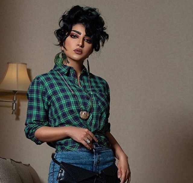 فقد صبغت شعرها باللون البنفسجي وأضافت ماكياجاً صاخباً مع أظافر طويلةباللون نفسه. ووضعت رموشاً اصطناعية كثيفة جداًمع اعتمادصيحة الحاجبين العريضين.