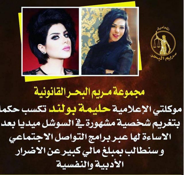 كشفت مجموعة البحر القانونية تحقيق الإعلامية الكويتية حليمة بولند انتصاراً قضائياً على أحد المشاهير.