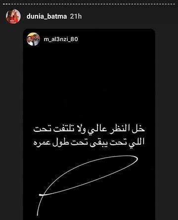 وكانت بطمة نشرت عبر خاصية الستوريز رسائل إلى منتقديها والهجوم الذي واجهته وقالت في احداها: "خلي النظر عالي ولا تلتفت تحت. اللي تحت يبقى تحت طول عمره".