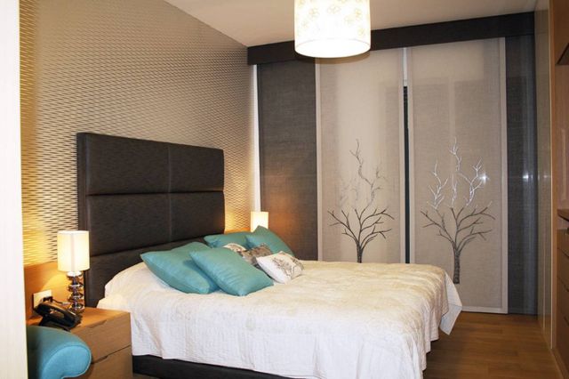 ويلفتنا في غرفة نوم أحد الأبناء سرير مزدوج كبير الحجم، غطاؤه موشّى بتدرّجات اللون الأزرق، وفي أحد الأركان برز مصباح نحاسي ربما توارثه المالكون عن الأجداد، وازدانت جدرانها بعدد من اللوحات التي تعكس فرح الطبيعة وتبث الأمل والرفاهية في نفس قاطنها.