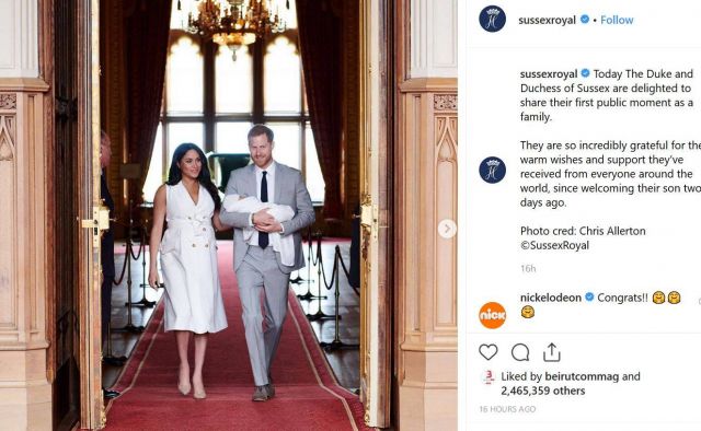 فوجئ متابعو أخبار الأسرة الملكية في بريطانيا بالظهور الأول لدوقة ساسكس ميغان ماركل أمس (الأربعاء 8 أيار مايو 2019)، برفقة زوجها وطفلهما بعد ولادة الأخير.