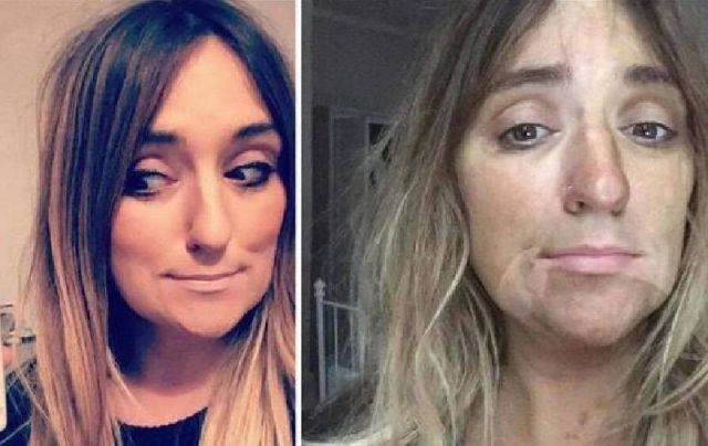 وحاولت إخفاء التشوهات مستخدمة طرق التقشير المختلفة لكن من دون فائدة. وأضافت: "عندما انتهيت من الاستحمام فركت وجهي بالمحارم المزيلة للمكياج وبدأت البقع بالاختفاء قليلاً. لكن الآثار ما تزال واضحة".