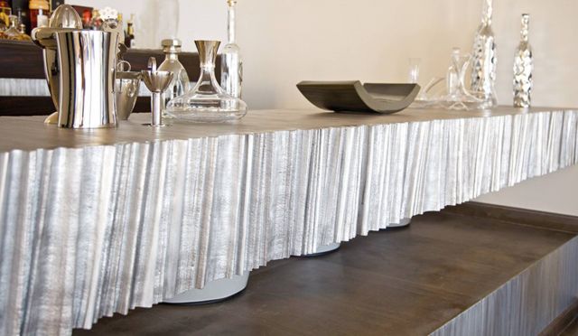 وبقوة، يفرض «الإينوكس» حضوره في كرسيين يتقدمان الجلسة الكبيرة للصالونات ممهورين باسم «فيليب ستارك» ويقفان في مواجهة طاولتين قوائمهما من الألمينيوم باللونين الرمادي والأرجواني.