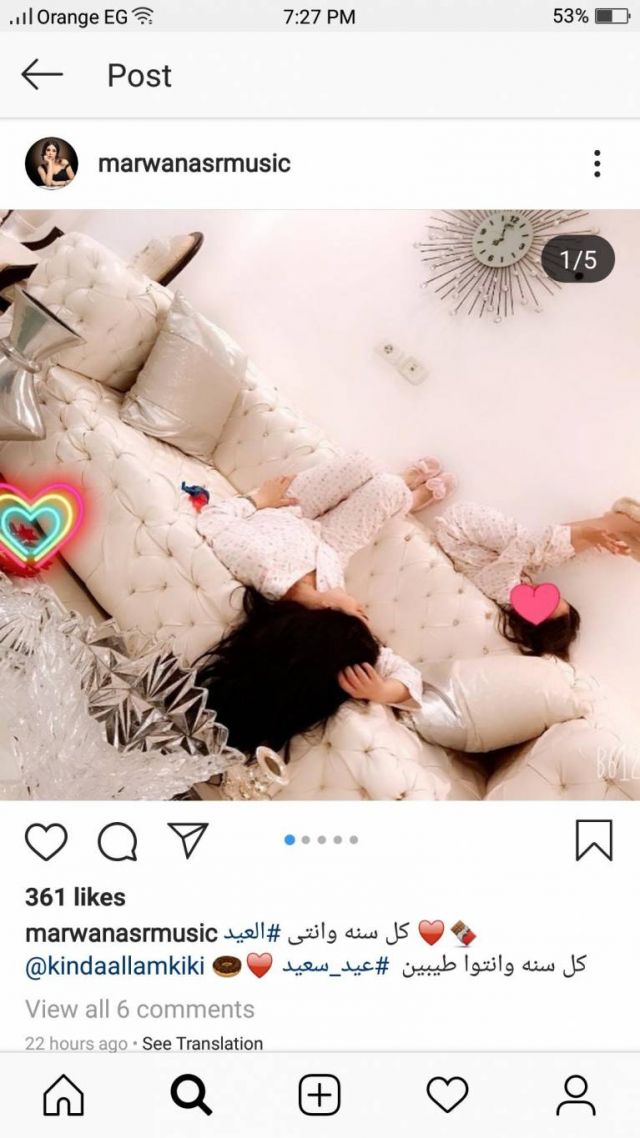 حالة من الجدل أثارتها نجمة "ستار أكاديمي" مروة نصر بعدما نشرت صوراً تجمعها بابنتها الوحيدة كندة، لكنها أخفت وجهها بشكل كامل من خلال وضع صور قلوب عليها.