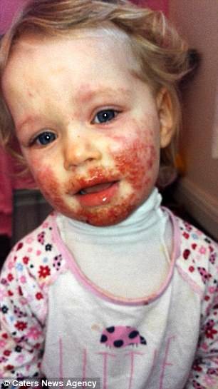 تعرضت طفلة بريطانية لتشوه في وجهها بسبب قبلة. وفي التفاصيل أن سيينا دافيلد كانت تحتفل بيوم ميلادها الثاني، عندما قام أحد الأقارب بتقبيلها على خديها.