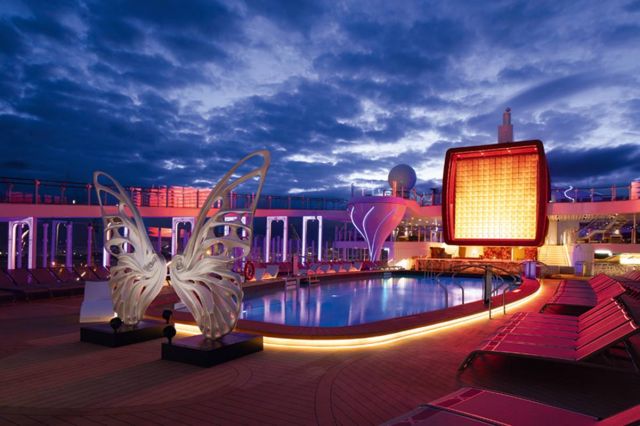 الطريف في هذه السفينة هو الجزء المسمّى بـ"البساط السحري" أو The Magic Carpet، وهو منصّة يمكن تحريكها على جانبَي السفينة، لزيادة المساحة حول بركة السباحة.