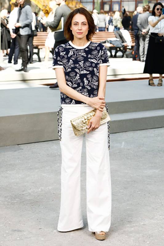 ثمة طابع مرح في التنانير المكشكشة المصنوعة من الشيفون المطبع بالمربعات، والفساتين المصنوعة من الشيفون الأزرق والفوشيا والمطبعة برسوم النباتات. أما الفساتين غير المتماثلة المصنوعة من الكتان والأورغنزا فتفيض براءة وروعة، تماماً مثل الفساتين الطويلة المصنوعة من القماش الأسود المخرم. بالنسبة إلى السهرات، تحولت المراويل البيضاء والسوداء إلى فساتين أنيقة مع ياقات قابلة للفك مزينة بسلسلة شانيل أو مطرزة بالأزهار. القميص الرجالي أصبح أنثوياً بفضل قماش الأورغنزا الشفاف، فيما قميص البوبلين تحول إلى توب مكشوف الظهر، مزموم مع خصر عال. العقدة الزخرفية المعهودة جرى استبدالها بشريط ساتين معقود مع زهرة كاميليا. وفستان الكتان الأسود بدا مطرزاً بالترتر الذي يجذب ألوان الليل، فيما فستان آخر مزين بباقات من أزهار الترتر الوردية.