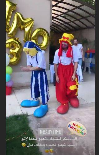 ونقلت النجمة السورية لمتابعيها عبر خاصية الستوريز على تطبيق انستغرام بصور ومقاطع من اجواء الحفل الذي ضم الشخصيات البهلوانية والزينة المناسبة لصاحب العيد مع بالونات ملونة وعربة تج تجهيزها لهذه المناسبة، وحرصت على مشاركة الطفل ووالدته واصدقائها باللعب والرقص والتمتع بالاجواء والقيام بكل ما يمكن ان يسعد ابن شقيقها.
