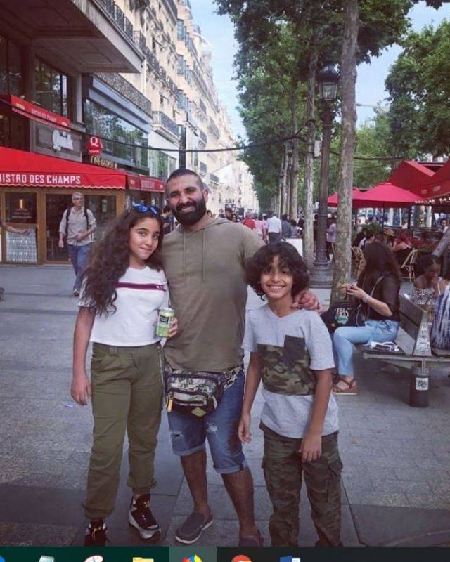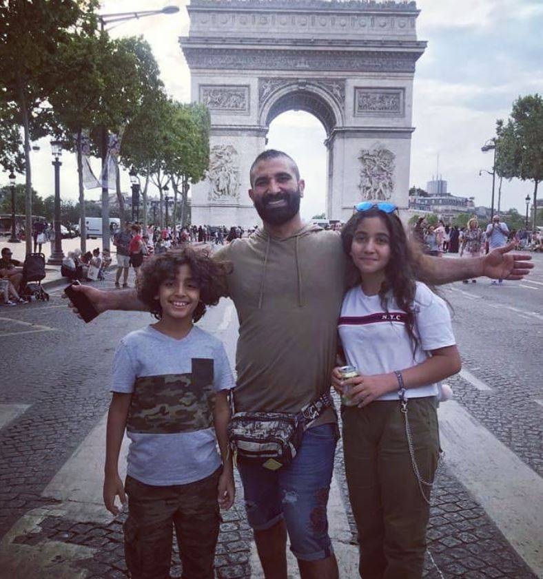 وظهر في الصور برفقتهما في أماكن مختلفة من المدينة. وتعليقاً كتب: "الحمد لله أنا وأولادي الأحباب بنقضي إجازة الصيف في باريس".