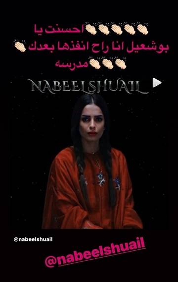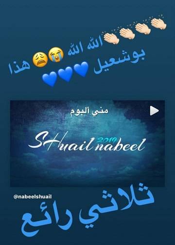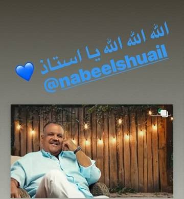 وشاركت متابعيها على خاصية الستوريز على تطبيق انستغرام بمنشورات حماسية تضمنت صورة للنجم الكويتي وعلقت عليها "الله الله الله يا استاذ نبيل"، وارفقت الصورة الثانية بتعليق اخر قالت فيه: "هذا بو شعيل ثلاثي رائع".