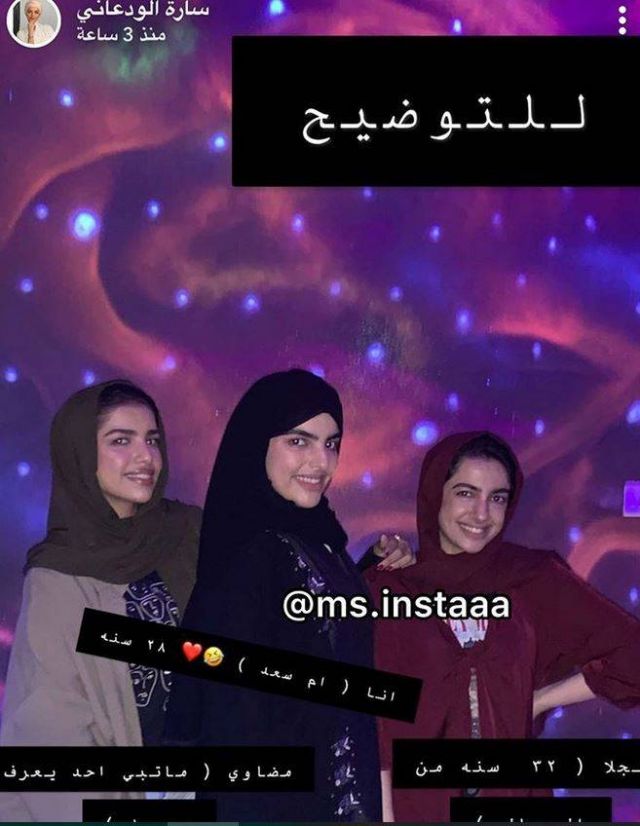 وعلقت: "أما أم سعد، 28 سنة. نجلا 32 سنة من الجمال. مضاوي ما تبي أحد يعرف عمرها".